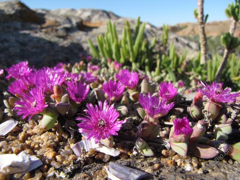 Antimima dasyphylla is an ice-ear plant species first described by Rudolf Schlechter , and now became known as HEK Hartmann. Antimima dasyphylla is part of the genus Antimima and the family isotropic plants . Mesembryanthemum (meaning "midday flowering") is a genus of flowering plants indigenous to southern Africa. Many species formerly placed herein, such as Dorotheanthus bellidiformis, Carpobrotus and Sceletium have since been moved into other genera.Fig marigold or icicle plant is a name for any of several South African taxa of Mesembryanthemum which are cultivated as ornamental plants for their showy pink or white flowers. "Pebble plant" or "Ice plant" are other, but rather ambiguous, common names, usually referring to other Aizoaceae. In Afrikaans, "Mesembryanthemums" are known as 'vygies', although this term also refers to many plants in the family Aizoaceae. Mesembryanthemum is a member of the family Aizoaceae; like many members of this family, it is characterized by long-lasting flower heads. Flowers of Mesembryanthemum protect their gametes from night-time dews or frosts but open in sunlight. There is an obvious evolutionary advantage to doing this; where sun, dew, frost, wind or predators are likely to damage exposed reproductive organs, closing may be advantageous during times when flowers are unlikely to attract pollinators.Ornamental Mesembryanthemum may escape into the wild and consequently has become widely naturalized outside their native range. They are considered an invasive weed in certain places. Some species are thought to be hallucinogenic plants like related Aizoaceae and as such may be subject to legal restrictions (e.g. Louisiana State Act 159).