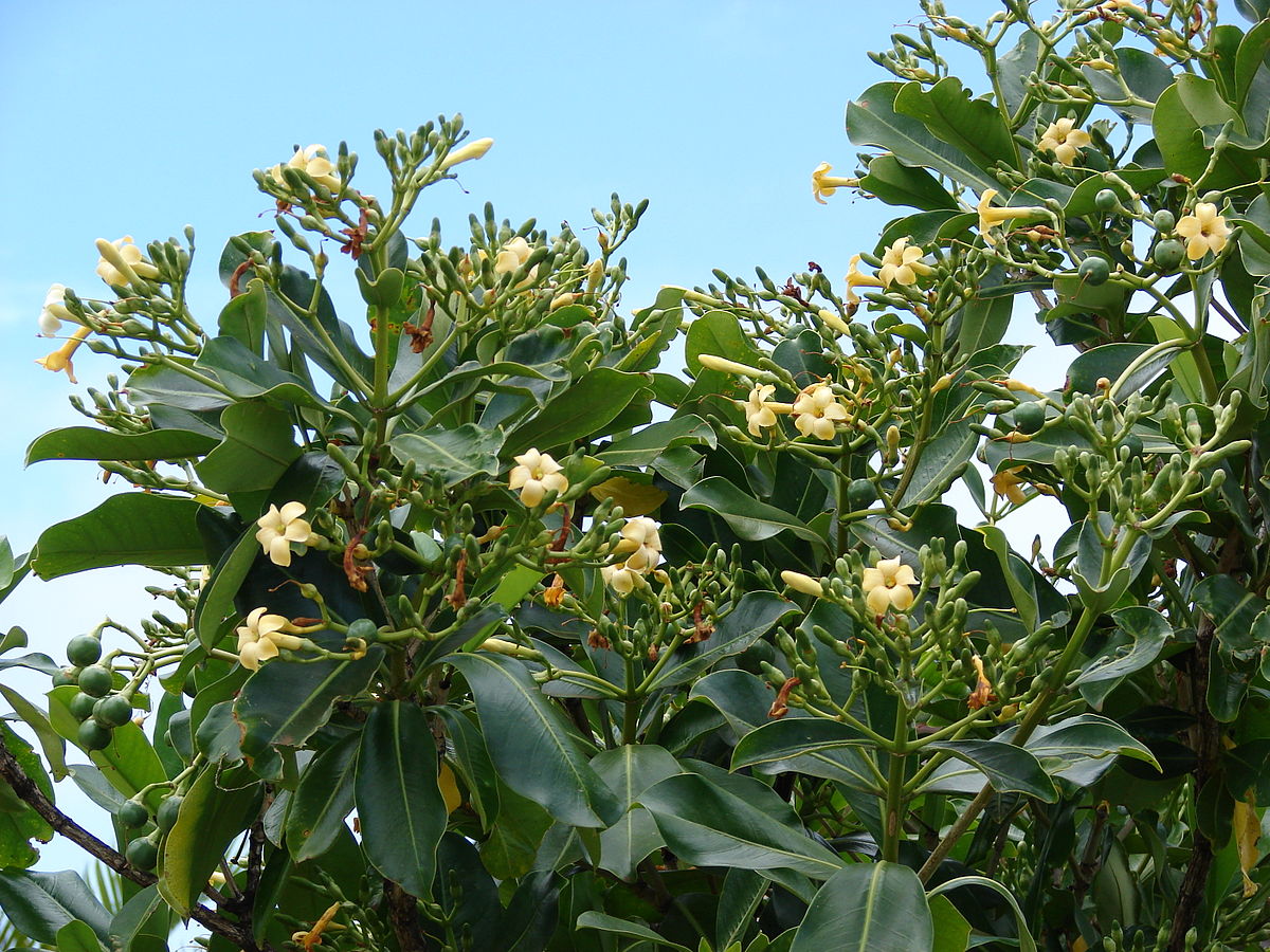 Fagraea is a genus of plants in the family Gentianaceae.It includes trees, shrubs, lianas, and epiphytes. They can be found in forests, swamps, and other habitat in Asia, Australia, and the Pacific Islands, with the center of diversity in Malesia. Many Fagraea species have a variety of human uses, particularly the wood and flowers. The flowers open in the evening and are often fragrant and bat-pollinated. They are so conspicuous they have roles in Polynesian mythology. They make the trees attractive as ornamental plantings. Some are used in leis. Fagraea auriculata produces a flower over 30 centimeters wide, one of the largest flowers of any plant in the world. Many species, especially the Malesian taxa, have valuable wood. It was used to carve tikis. Some have been used in traditional medicine, perfumery, and aromatherapy. The flowers are featured in the traditional artwork of various cultures. The fruits are food for many animals, including cassowaries, flying foxes, and civets.
