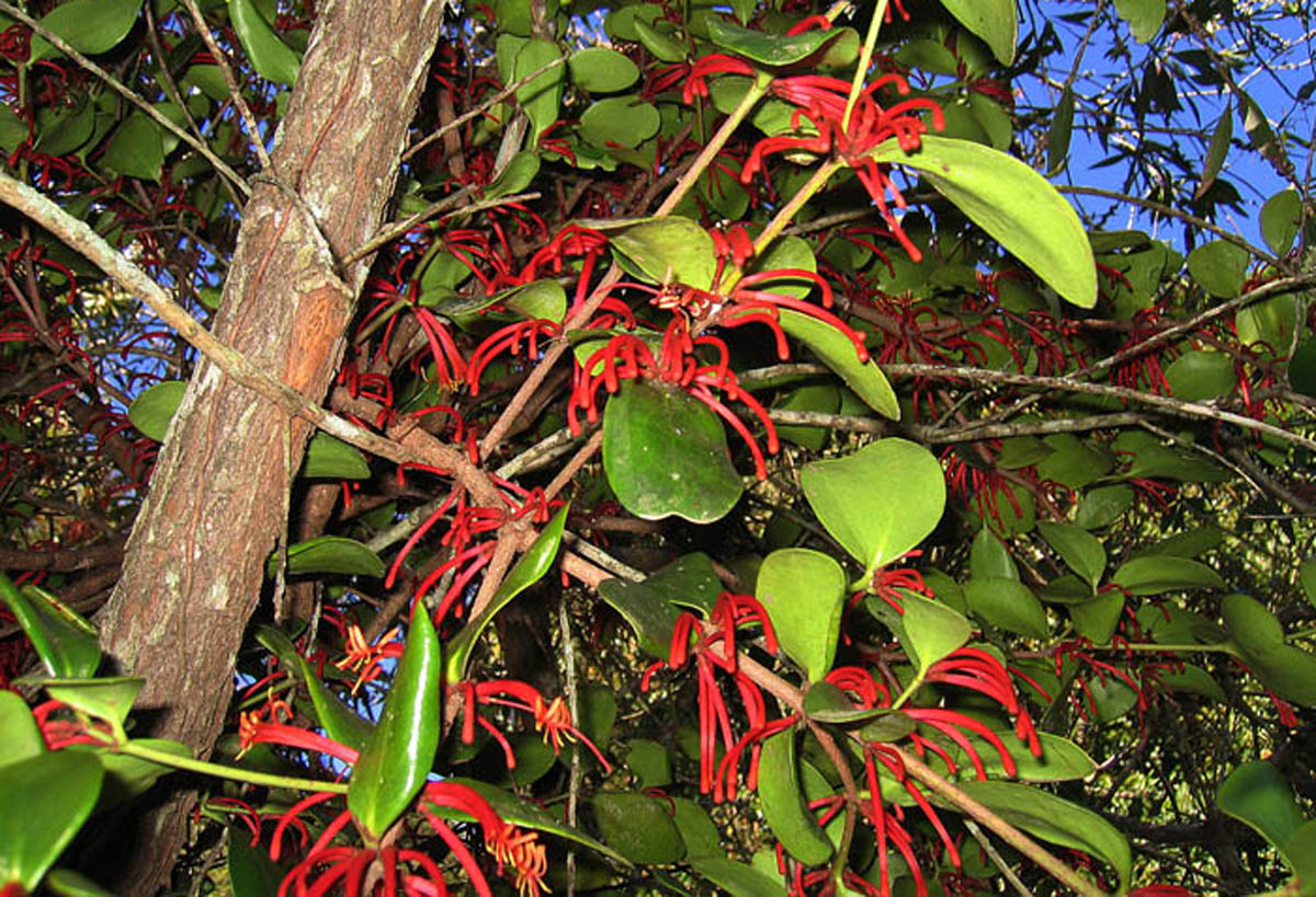 Loranthus is a genus of parasitic plants that grow on the branches of woody trees. It belongs to the family Loranthaceae, the showy mistletoe family. In most earlier systematic treatments it contains all mistletoe species with bisexual flowers, though some species have reversed to unisexual flowers. Other treatments restrict the genus to a few species. The systematic situation of Loranthus is not entirely clear.