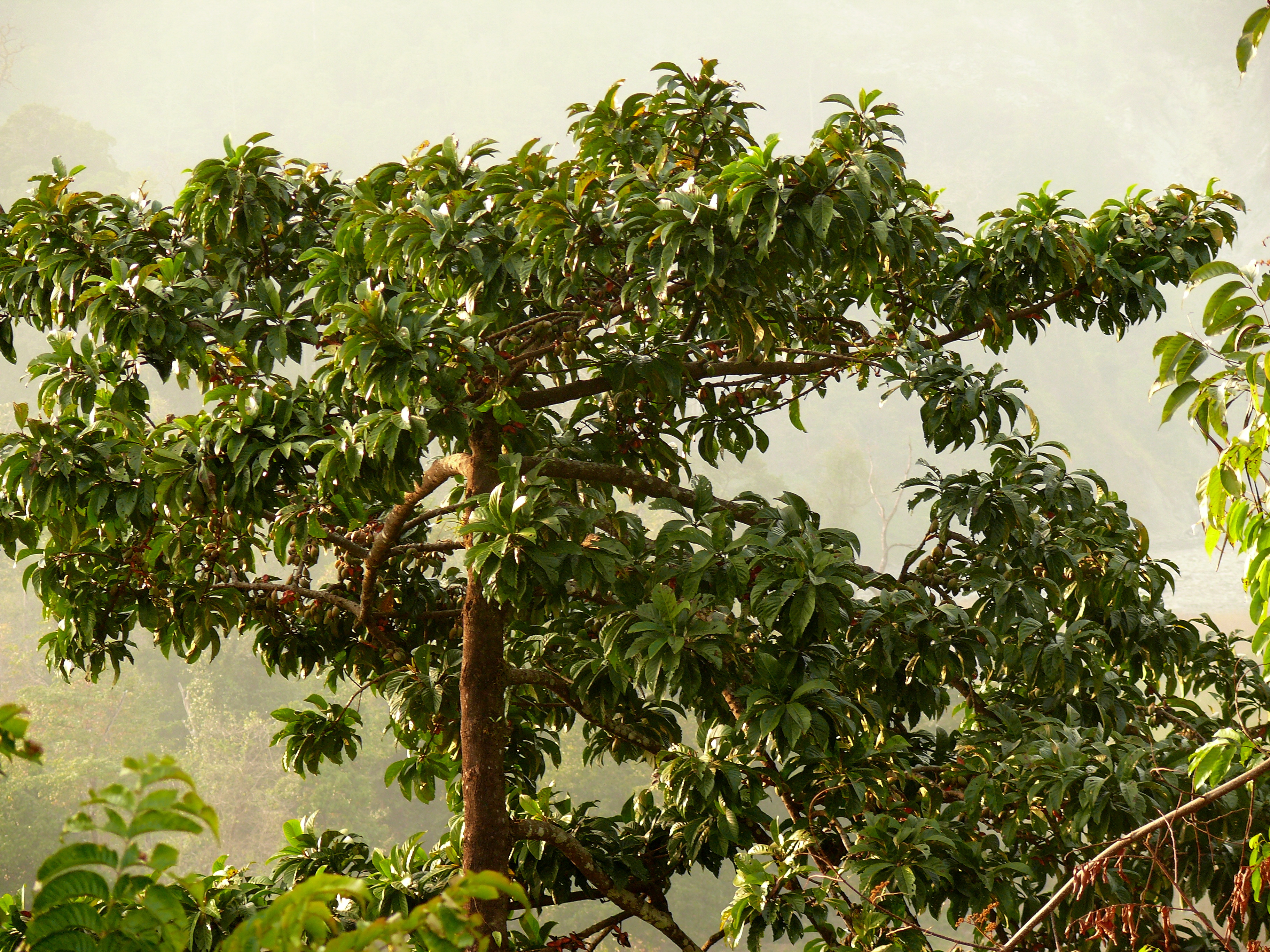 Horsfieldia kingii is a dioecious tree belonging to the Myristicaceae family. It grows up to 20 m tall and has large seeds that are dispersed by frugivores such as hornbills and imperial pigeons. The fruiting period is from February to May. The fruit is an arillate capsule and is bi-coloured. The plant is referred to as ramtamul in Assamese language and is sometimes used as a substitute for betelnut. However, they could be mildly intoxicating to humans. The leaves form a part of the diet of the endangered capped langur.