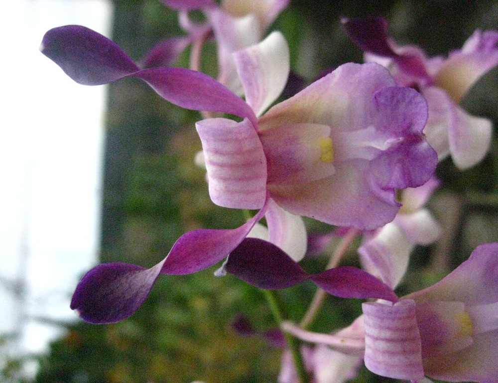 Dendrobium taurinum, the bull orchid, is a species of flowering plant in the family Orchidaceae. It is found in the Philippines and in the Indonesian Province of Maluku. The size of the flower ranges from 5 to 6.5 cm. Dendrobium is a genus of mostly epiphytic and lithophytic orchids in the family Orchidaceae. It is a very large genus, containing more than 1,800 species that are found in diverse habitats throughout much of south, east and southeast Asia, including China, Japan, India, the Philippines, Indonesia, Australia, New Guinea, Vietnam and many of the islands of the Pacific. Orchids in this genus have roots that creep over the surface of trees or rocks, rarely having their roots in soil. Up to six leaves develop in a tuft at the tip of a shoot and from one to a large number of flowers are arranged along an unbranched flowering stem. Several attempts have been made to separate Dendrobium into smaller genera, but most have not been accepted by the World Checklist of Selected Plant Families. Dendrobium species are mostly epiphytic, or lithophytic although a few species are terrestrial. They are sympodial herbs with cylindrical roots usually arising from the base of a pseudobulb. The pseudobulbs, when present, are hard, sometimes cane-like, cylindrical or cone-shaped and more or less covered with the bases of the leaves. There are from one to many leaves arranged in two ranks, the leaves varying in shape from linear to oblong, sometimes cylindrical but never channelled or grooved. They are usually much longer than wide and last for only a single season. Between one and a large number of resupinate or non-resupinate flowers are arranged along an unbranched flowering stem and may be short or long-lived. The flowers may be white, green, yellow, or pink to purple, often with contrasting colours in the labellum. The sepals and petals are usually free from and more or less similar to each other but markedly different from the labellum. The labellum is more or less egg-shaped, with the narrower end towards the base and flanks the column. There is often a callus consisting of narrow, parallel ridges, in the centre of the labellum. Orchids in the genus Dendrobium have adapted to a wide variety of habitats, from the high altitudes in the Himalayan mountains to lowland tropical forests and even to the dry climate of the Australian desert