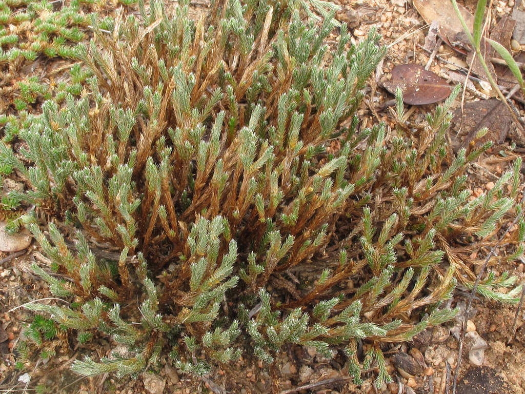 Selaginella species are creeping or ascendant plants with simple, scale-like leaves (microphylls) on branching stems from which roots also arise. The stems are aerial, horizontally creeping on the substratum (as in Selaginella kraussiana)sub erect (Selaginella trachyphylla)or erect(as in Selaginella erythropus). The vascular steles are polystelic protosteles. stem section shows the presence of more than two protosteles.